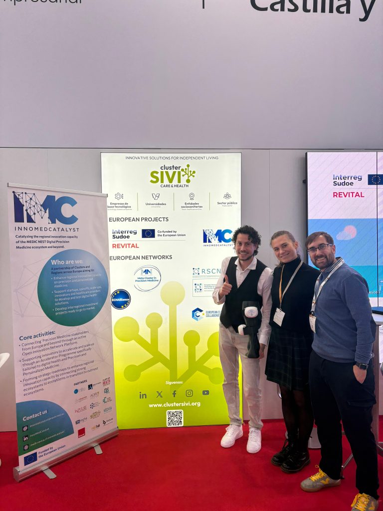 El proyecto InnoMedCatalyst estuvo presente en el stand del Clúster SIVI, ubicado en el Hall 15, Stand G04-9, dentro del Pabellón España. Allí, representantes del consorcio participaron activamente en la presentación del proyecto, explicando cómo está contribuyendo a mejorar las capacidades de innovación regional y a acelerar el desarrollo de soluciones de medicina digital y de precisión.