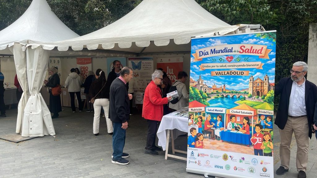 Entre las acciones desarrolladas, destacó la jornada informativa celebrada en la Plaza de Zorrilla, donde se instalaron 16 mesas informativas en las que distintas entidades dieron a conocer servicios y recursos relacionados con la prevención y promoción de la salud. Entre ellas, participaron nuestros socios Fundación INTRAS, Federación Salud Mental Castilla y León y el Colegio Oficial de Psicólogos de Castilla y León.